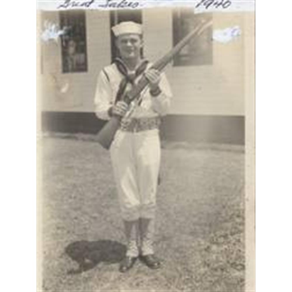 Seaman Hood was among 368 crewmen who survived the sinking of the heavy cruiser USS Houston during the Battle of Sunda Strait only to be captured by the Japanese and interned in several prison camps. The Houston was attempting to sail through the narrow strait when just after midnight, she was spotted and surrounded by multiple Japanese warships. Despite intelligence reports that there were no enemy ships in the area, the cruiser found herself in a desperate battle against an entire Japanese battle fleet. The ship was hit by four torpedoes and close-range gunfire until she rolled over and sank. Seaman Hood was eventually liberated by Allied forces and died in 2007.