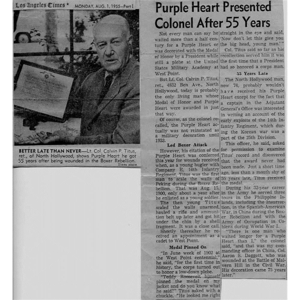 Calvin Titus, serving as a Musician, was wounded the day following the events that earned him the Medal of Honor.